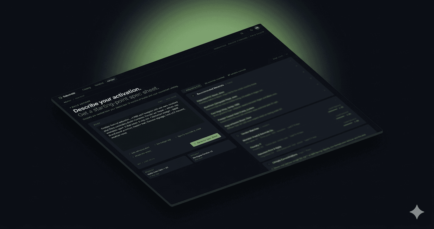 Paste a brief. Get a starting point. Not a generic AI answer, a recommendation grounded in your agency's vendors and proven materials.